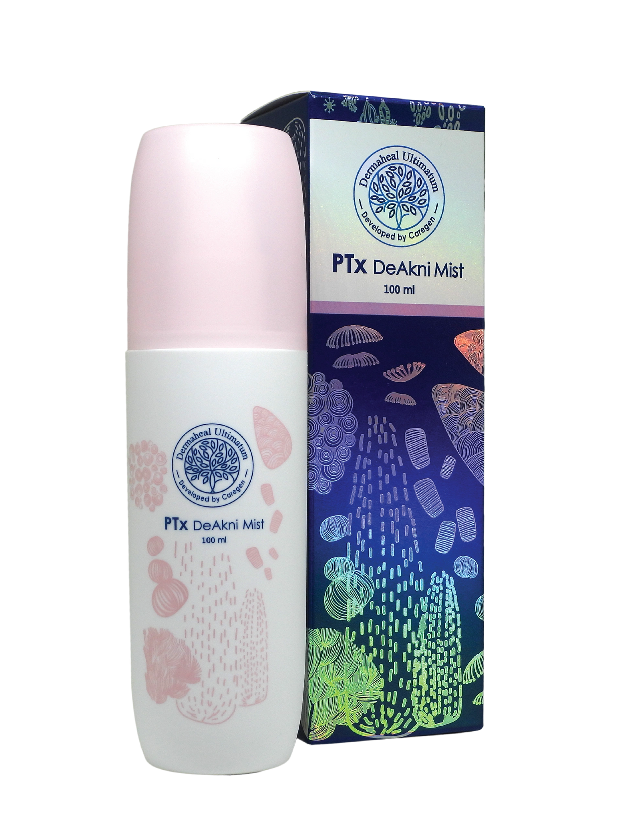 Después de la limpieza del rostro, rocíe un poco de PTx DeAkni Mist en su cara, dé ligeros toques hasta su absorción completa.