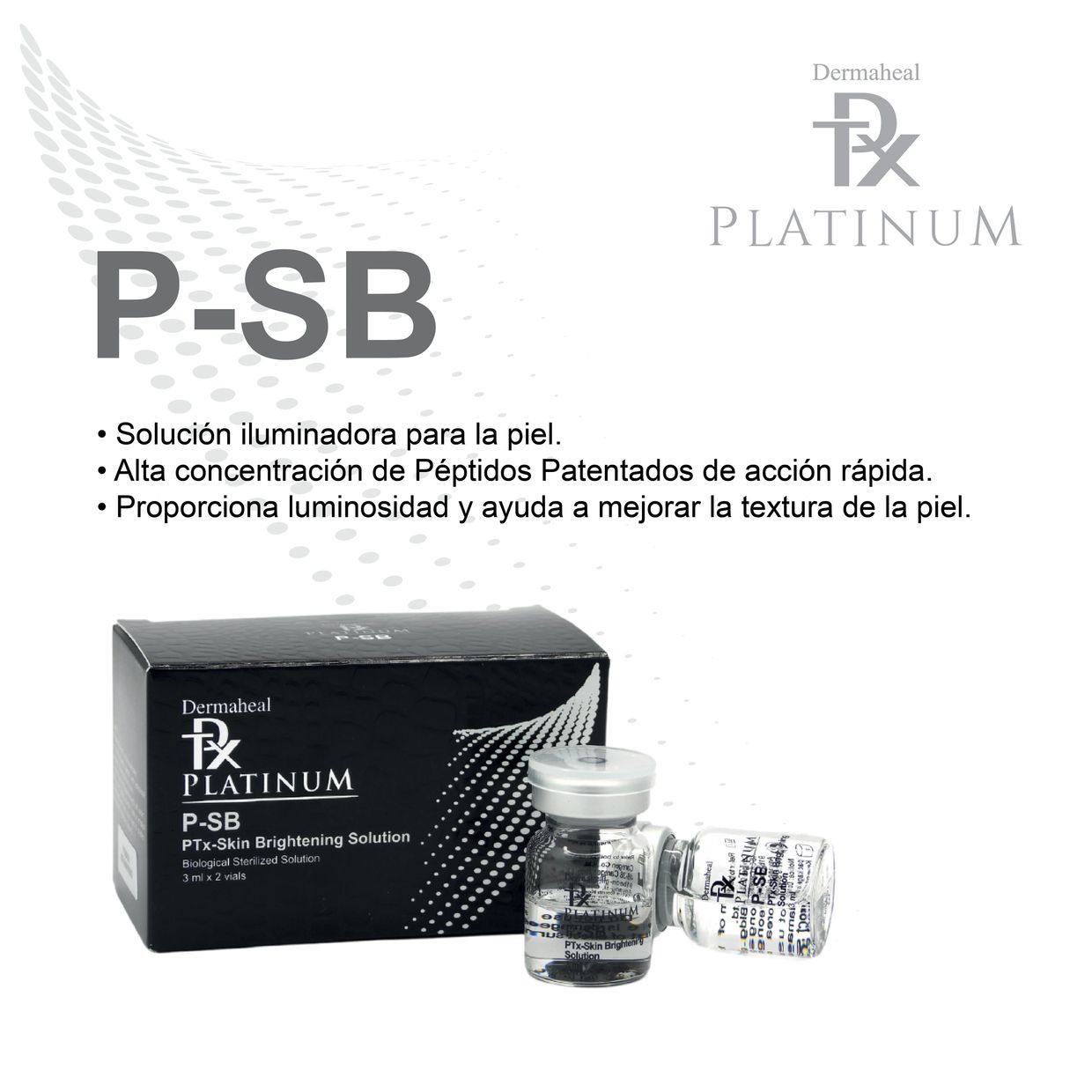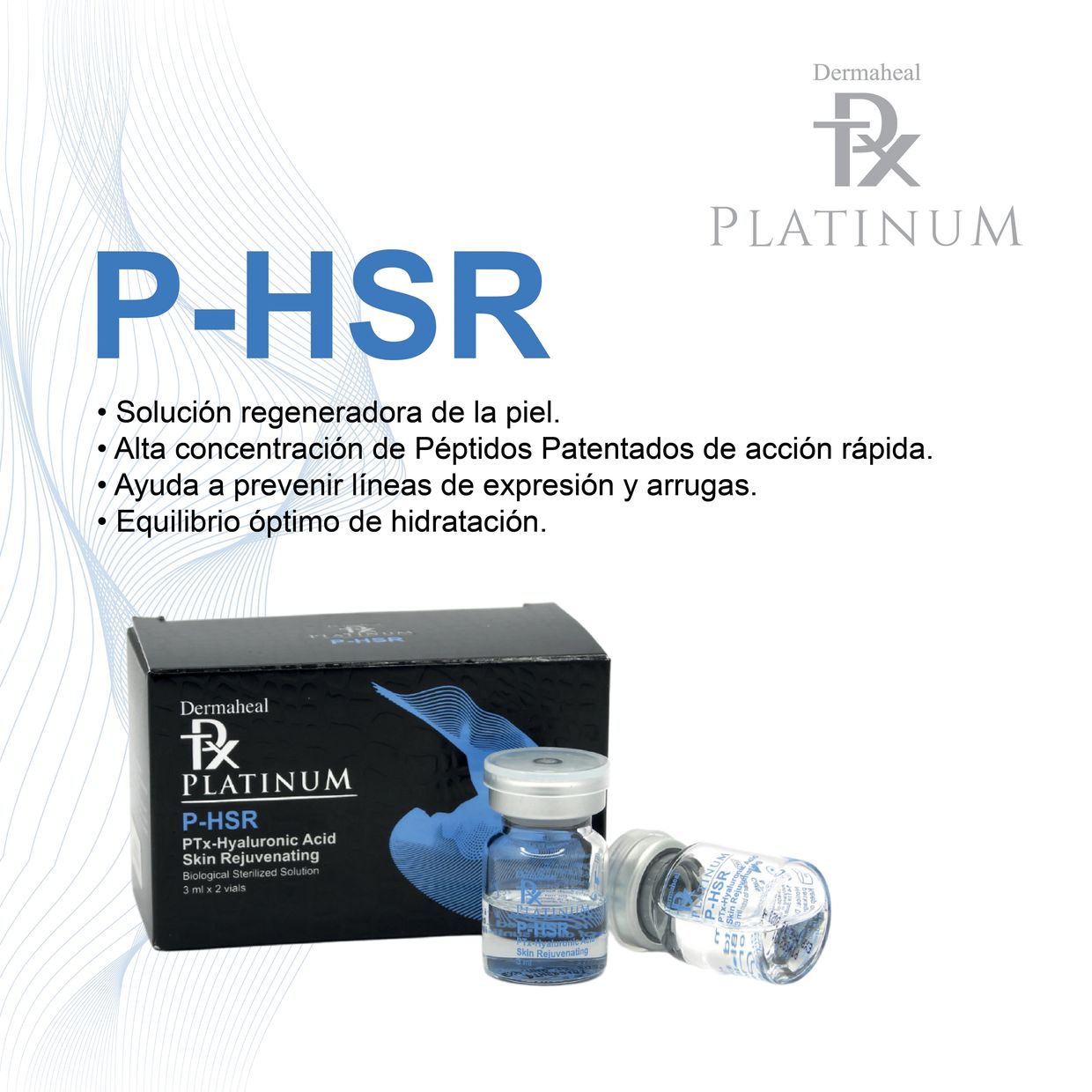 Solución rejuvenecedora de la piel, potenciada por una alta concentración de Péptidos Biomiméticos patentados de acción rápida, previene las líneas de expresión y las arrugas .
